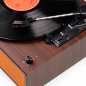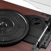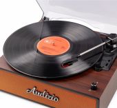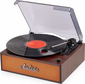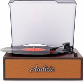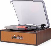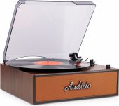 Bring back the timeless charm of vinyl with the Audizio Reno, a stylish record player designed for true music lovers. Inspired by vintage aesthetics and modern simplicity, the Reno turntable features a warm wood finish, built-in stereo speakers, and a protective dust cover, all wrapped in a nostalgic retro design. Whether you're spinning old classics or discovering new favourites, the Reno is perfect for casual listening and home decor alike. With the built-in BT receiver, digital music can also be streamed wirelessly from a smartphone, tablet PC or other BT compatible device and can be listened to the stereo speakers. - Wooden record player in retro look