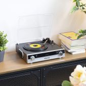 Mobilize your music with the RP102 record player. This multifunctional turntable is ideal for listening to your collection of favourite records or for converting them to MP3 music. Just connect the record player to your computer using the supplied USB cable. You can convert vinyl to digital files on the computer by yourself through USB recording and editing software such as Audacity (included). The built-in BT receiver lets you wirelessly stream the digital music from the smartphone, tablet, PC or other BT compatible devices to the dual built-in stereo speakers.