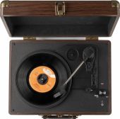 The RP114 Record Player in suitcase design is the perfect combination of trendy and retro. This stylishly designed record player has a nostalgic wood look finish, is lightweight and makes it possible to listen to music without having to connect it to a speaker system thanks to the built-in stereo speaker system. The portable design and carrying handle allow you to listen to music anywhere.