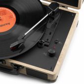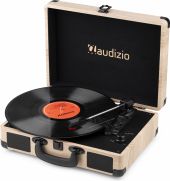 Enjoy the authentic sound of vinyl using this Audizio RP116 record player. This stylish briefcase, covered in a PU leather finish, is lightweight and allows listening to music without having to connect it to a speaker system. Connects wirelessly to speakers, headphones and other devices equipped with BT wireless technology or to wired audio systems and powered speakers. With the built-in BT receiver, digital music can also be streamed wirelessly from a smartphone, tablet PC or other BT compatible device and can be listened to via the stereo speakers.