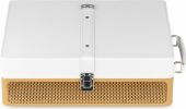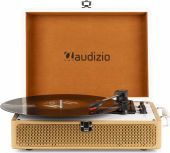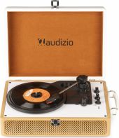 Play your vinyl on this stylishly designed RP119 record player. This high quality vintage style turntable is covered with a stylish PU leather finishing combined with a luxurious gold-coloured speaker grill. The RP119 connects wirelessly to speakers, headphones and other devices equipped with BT wireless technology or to wired audio systems and powered speakers. The built-in BT receiver also allows you to wirelessly stream digital music from a smartphone, tablet PC or other BT-compatible device and listen to it via the stereo speakers built into the turntable.