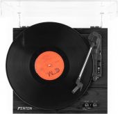 |  | The Fenton RP165 record player with built-in amplifier is elegantly simplistic in design. Listen to your vinyl records with optimal sound by adjusting the volume on the two included speakers. These dual stereo 50 watt speakers blast music from either a 3 speed turntable (33 1/3, 45, 78 RPM) or built-in BT technology to wirelessly stream music from any BT enabled device. - Built-in stereo amplifier