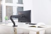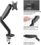 MAD-G-serien gassfjærmonitorarmer har et robust utseende og yter godt. Med et enkelt fingertrykk gir den høykvalitets gassfjær mekanismen enkel bevegelse av monitorarmen, inkludert opp, ned, utvidelse og tilbaketrekking for å oppnå den beste ergonomiske posisjonen. Den praktiske VESA-platen med nøkkelhullspor gjør det enkelt å montere eller fjerne skjermen. Skrivebordsklemmen og monteringsskruen er inkludert. Kabelhåndtering langs armen holder arbeidsområdet rent og kablene organisert. Kompatibel med VESA 75x75 og 100x100.