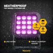 StarColor LED-flomlysene er laget av høykvalitets støpt aluminium og herdet glass, med IP65 vanntett klasse, holdbar og frostbeskyttende. Disse armaturene kan brukes ved temperaturer mellom -20 og +40 grader Celsius og tåler tøffe værforhold. Ved å bruke den nyeste LED-teknologien med RGBW-farger og avanserte linser, er StarColor-flomlysene i stand til å skape riktig atmosfære for enhver anledning. Passer for en rekke bruksområder, fra å belyse en stor arena eller bygning til å lyse opp en scene for live-opptredener.