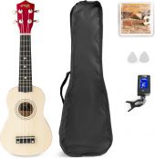UKEY Ukulele er en populær sopran ukulele kit, ideell for nybegynnere. Ukulelen, opprinnelig designet på Hawaii, har vært utrolig populær de siste 80 årene for sin fantastiske lyd, praktiske størrelse og ekstremt enkle læringsprosess. Dette godt konstruerte instrumentet har en kropp og topp laget av basswood som produserer en lys lyd med utmerket sustain. (evnen til et musikkinstrument til å fortsette å resonnere en tone eller tone) Kittet leveres med en praktisk digital tuner, to plukker, ekstra strenger og en holdbar praktisk bag. De nylonstrenger og miljøvennlige designet gjør det til ditt favoritt musikkinstrument. Ha det gøy og lær musikk samtidig. - Komfortabelt formet Basswood-hals