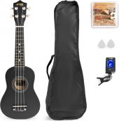 The UKEY Ukulele is a popular soprano ukulele kit, ideal for beginners. The ukulele originally designed in Hawaii has been incredibly loved in the last 80 years for its amazing sound, its practical size and extremely easy learning process. This well-constructed instrument has a body and top made of basswood that produces a bright sound with excellent sustain. (capacity of a musical instrument to continue the resounding of a note or tone) The kit comes with a handy digital tuner, two picks, extra strings and a durable handy bag. The nylon strings and eco-friendly design make it your favourite musical instrument. Have fun and learn music at the same time. - Comfortably shaped Basswood neck