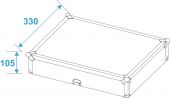 | Maximum load: | 10 kg | | Removable covers: | 1 pc/pcs | | Aluminum profile frames: | 25 mm | | Carrying handle: | 1 pc/pcs | | Lock: | Butterfly lock: 2 pc/pcs with shut-off function | | Material: | Plywood multi-layer glued, 7 mm | | Color: | Black, laminated | | Inside dimensions: | 26 cm x 40 cm x 10 cm | | Front panel width: | 10" | | Mounting height: | Approx. 35.5 cm (8 U) | | Mounting depth: | 110 mm | | Housing design: | 8 U | | Dimensions: | Width: 33 cm Depth: 44 cm Height: 22 cm | | Weight: | 5.90 kg |     |