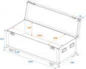 | Maximum load: | 100 kg | | Aluminum profile frames: | 30 mm | | Case handle: | 4 pc/pcs | | Stop hinge: | 3 pc/pcs | | Lock: | Butterfly lock: 2 pc/pcs | | Transport aid: | 4 x castors with 2 locking brakes 4 x built-in stacking trays in the cover | | Material: | Birch multiplex, 7 mm | | Color: | Dark brown, laminated | | Inside dimensions: | 120 cm x 40 cm x 34.5 cm | | Dimensions: | Width: 124 cm Depth: 44 cm Height: 58 cm | | Weight: | 21.75 kg |