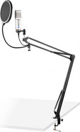 CMS320-settet inneholder en høytytende kondensatormikrofon sammen med en justerbar fjærarmstativ og en popfilter på en gooseneck. Studiomikrofonen er utstyrt med en 3,5 mm hodetelefonkontakt som lar deg lytte til det du spiller inn i sanntid, og volum- og ekko-kontrollene gir deg muligheten til å lage den perfekte opptak. Bredt brukt til sang, gaming, chatting, web hosting, personlig opptak, podcasting, video voiceovers, Skype-konferanser og mange andre applikasjoner. Bare koble direkte til en PC eller bærbar datamaskin ved hjelp av den inkluderte USB-kabelen, og den er klar til å brukes i plug-and-play-stil. - Kondensatormikrofon med USB-utgang