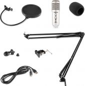 | Produktfarge | Sølv | | Utgangstilkoblinger | USB | | Frekvensrespons | 50Hz - 14.000Hz | | Impedans | 680 Ohm | | Følsomhet | -42dB (+/-2dB) | | Maksimal SPL | 125dB | | Mikrofontype | Kardioid | | Strømforsyning | 5V via USB | | Ledningslengde | 2,5m | | Dimensjoner (L x B x H) | 157 x 48mm (mikrofon) | | Vekt (kg) | 1,20 | pdf