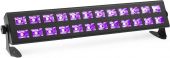 BUV-barene er kraftige UV LED-enheter som er i stand til å dekke store områder. Med sitt lave profil design er den egnet til å bli installert på nesten alle tenkelige måter. Fordi enheten er drevet av LED-er, blir den også en veldig lett enhet som enkelt kan transporteres fra arrangement til arrangement for de som er mobile DJ-er. BUV-serien er drevet av kraftige 3W LED-er som har svært lavt strømforbruk. Ideell for å vaske scener, nattklubber, bowlinghaller, rulleskøytebaner og underholdningssentre der ultraviolett effekt er ønskelig. - 24x 3W UV LED-er