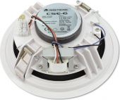 | Power: | Program: 12W Rated: 6W RMS | | Frequency range: | 100 - 18000 Hz | | Sensitivity: | 93 dB | | Max. SPL: | 97 dB | | Impedance: | Public address systems 100V | | Power tapping: | 3W; 6W RMS via screw terminal switchable | | Speaker: | 1 x full range loudspeaker 6" | | Type of speaker: | Flush-mount speaker | | Material: | ABS Acrylonitrile butadiene styrene | | Color: | White, scratchproof and shockproof | | Mounting dimensions: | Ø 17 cm | | Dimensions: | Depth: 7.6 cm Diameter: Ø 18.8 cm | | Weight: | 0.76 kg |