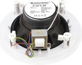 | Power: | Program: 80W Rated: 40W RMS | | Frequency range: | 50 - 20000 Hz | | Sensitivity: | 87 dB | | Max. SPL: | 101 dB | | Impedance: | Public address systems 100V | | Setup: | Easy installation | | Power tapping: | 10W; 20W; 40W RMS via no connector/cable only switchable | | Speaker: | 1 x woofer 8" Tweeter 0.5" | | Type of speaker: | Flush-mount speaker | | Color: | White | | Mounting dimensions: | Ø 24 cm | | Dimensions: | Depth: 10.5 cm Diameter: Ø 27 cm | | Weight: | 2.15 kg |