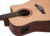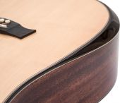 | Battery: | 1 x 9.0 V E block 6F22 zinc carbon built-in | | Pickup: | 1 x piezo with Pre-Amp and Tuner | | Version: | Right hand version | | Neck: | Mahogany, Fingerboard: rosewood 20 frets | | Body: | 4/4 dreadnought-form Mahogany massive | | Scale length: | 650 mm | | Nut width: | 43 mm | | Bridge: | Rosewood | | Number of strings: | 6 | | Equalizer: | 1 x 4-band tone control | | Top: | Spruce massive | | Hardware: | Chromium-plated | | Color: | Nature, high-gloss, painted | | Weight: | 2.35 kg |