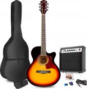 The ShowKit contains a steel string acoustic guitar and a guitar amplifier and is made with the best materials and workmanship possible at a very affordable price! The included Max Amp provide the perfect starting point for any guitar player. This guitar amplifier offers a wide range of features with excellent sounds for a variety of musical applications, whether you are an entry-level player or a seasoned pro. The kit comes with a heavy duty nylon carry bag, a digital tuner, picks, a guitar strap and a spare string set. - Acoustic Guitar Combo with Steel-String Guitar and Amplifier