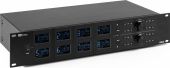 This set comes with a UHF 8 channels receiver, eight handheld microphones with rechargeable Li-ion battery, two removable BNC antennas, two extender cables for front-mounting the antennas, a power adapter and an Aluminium case Eight USB cables for charging the wireless microphones are also included. - Professional UHF wireless microphone system