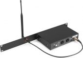 | Product colour | Black | | Input connections | 6.3mm Jack, XLR (3-pin) | | Output connections | 3.5mm Jack, 6.3mm Jack | | Frequency | 863.000 - 865.000 MHz | | Frequency response | 20Hz - 20.000Hz | | Sensitivity | 80dB on input 6dBµV | | Signal-to-noise ratio | >105dB | | THD | 3% | | Batteries | 3V (2x AA) | | Power supply | 100-240VAC 50/60Hz (12V Adapter) | | Power consumption | 0.081 - 0.040A | | Dimensions (L x W x H) | 215 x 178 x 47mm | | Dimensions: Body pack | 120 x 66 x 27mm (without antenna) | | Weight (kg) | 1,42 | | Weight: Bodypack | 0.15 | pdf