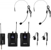 | Product colour | Black | | Output connections | 6.3mm Jack | | Microphone channels | 10 channels | | Frequency | 863.000 - 865.000 MHz | | Frequency response | 40Hz - 80.000Hz | | Frequency stability | +/- 10ppm | | RF output | <10mW | | Sensitivity | -95dB - -71dB | | Signal-to-noise ratio | >90dB | | THD | <0,5% | | Output level: Master | 300mV | | Batteries | 3.7V (18650 Li-ion cell) | | Power supply | 5V via USB | | Dimensions: Receiver | 115 x 35 x 25mm | | Dimensions: Body pack | 75 x 60 x 23mm | | Weight (kg) | 0,65 | pdf