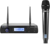 The Vonyx WM6 Wireless Microphone Series delivers clear, noise-free wireless transmission and excellent sound reproduction. Simple setup and installation allow you to transmit clear sound instantly. These systems operate in the 863-865MHz UHF band and features 16 channels, signal to noise ratio performance and are provided with a bright and clear display. These are great microphone devices for party, speech, karaoke, sport lessons, meetings and so on. - Receiver with 1 handheld microphone