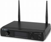 | Product colour | Black | | Output connections | 6.3mm Jack, XLR (3-pin) | | Microphone channels | 16 channels | | Frequency | 863.000 - 865.000 MHz | | Frequency handheld microphone(s) | Selectable | | Frequency response | 40Hz - 17.000Hz | | Frequency stability | 0.002% | | Sensitivity | -90dB | | Signal-to-noise ratio | >90dB | | THD | <1% | | Power supply | 100-240VAC 50/60Hz (5V Micro-USB) | | Power consumption | 0.036 - 0.018A | | Dimensions: Receiver | 185 x 215 x 40mm | | Dimensions: Microphone | 52 x 250mm | | Weight (kg) | 0,70 | pdf