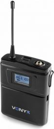 The Vonyx WM6 Wireless Microphone Series delivers clear, noise-free wireless transmission and excellent sound reproduction. Simple setup and installation allow you to transmit clear sound instantly. These systems operate in the 863-865MHz UHF band and features 16 channels, signal to noise ratio performance and are provided with a bright and clear display. These are great microphone devices for party, speech, karaoke, sport lessons, meetings and so on. - Receiver with 1 bodypack and headset microphone