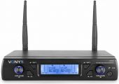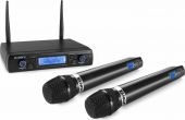 The Vonyx WM6 Wireless Microphone Series delivers clear, noise-free wireless transmission and excellent sound reproduction. Simple setup and installation allow you to transmit clear sound instantly. These systems operate in the 863-865MHz UHF band and features 16 channels, double frequency, signal to noise ratio performance and are provided with a bright and clear display. These are great microphone devices for party, speech, karaoke, sport lessons, meetings and so on. - Dual receiver with 2 handheld microphones