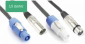 Power and signal cable incorporated in one single 1.5m cable. No more cable-"mess", only one cable to your active loudspeaker, mixer, etc. - Combi cable with power and signal (audio) in a cable